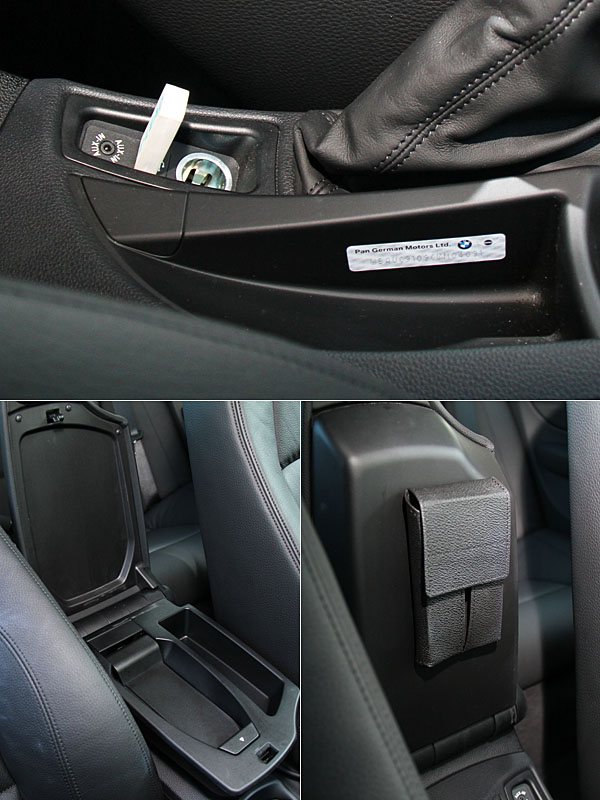中央扶手下方配置一皮套可放置如MP3播放器等功能,而外接音源插座則在手煞車後方。
