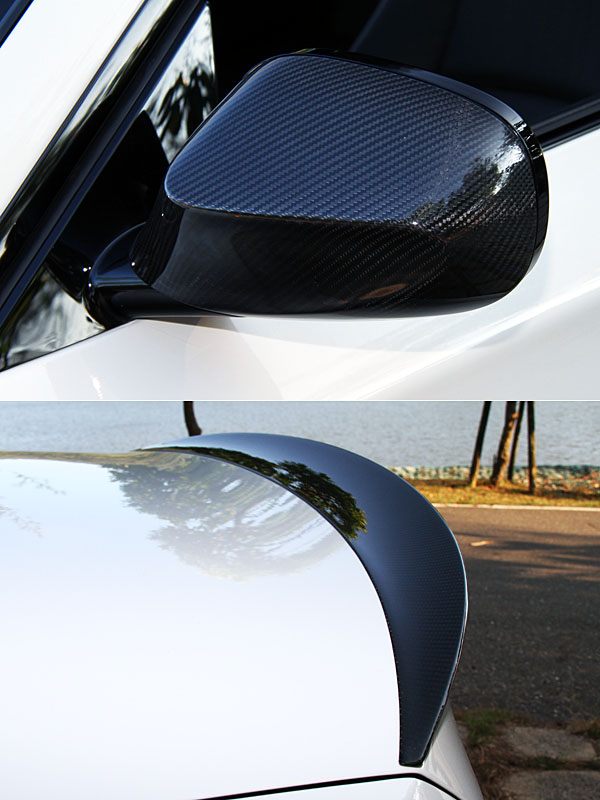 加價13,360元(單邊)的碳纖維後視鏡與34,753元的碳纖維尾翼。