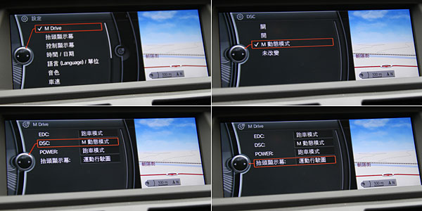 透過iDrive內建置的設定功能,M Drive駕駛介面可針對DSC、Power Mode、EDC與HUD等系統,依照個人駕駛習慣加以調整,省去駕駛一一設定的時間。
