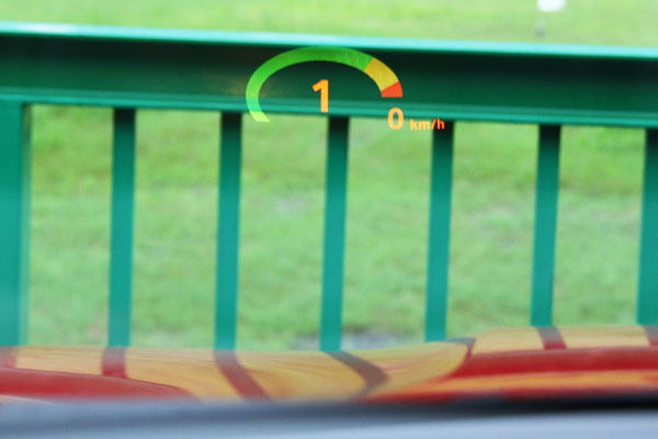 HUD抬頭顯示器可顯示多樣資訊,包含時速、檔位、轉速等皆可提供。
