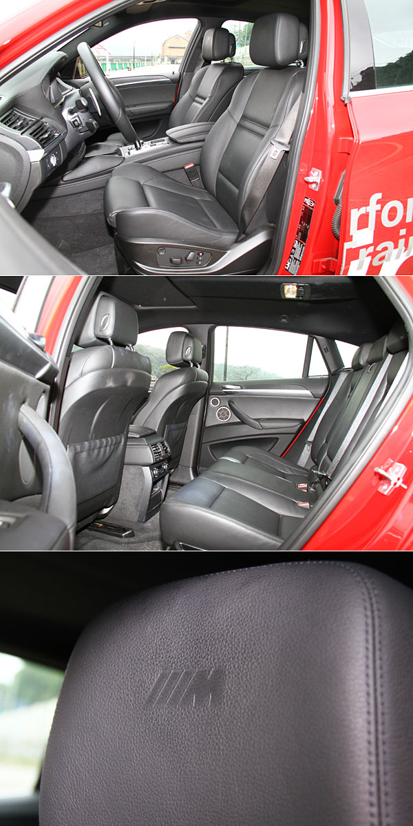 當然,我們也不可忘了,在台灣的消費習慣中,除了有一票消費者是因為X6 M的過人動力而入主,另外尚有習慣「攻頂」的層峰消費者,是因為X6 M那位居車系頂級的定位而入主,而此點,X6 M也不會令此類消費者而失望。從配備面切入,除了動力面於車系中的獨樹一格外,諸多設計與配備也是立基於頂級豪華的基礎上,進一步的滿足消費者的熱血慾望。從顆粒觸感明顯的Merino真皮開始,到近來M家族擅用的碳纖維皮質控台包覆,還有M款雙前座電動調整座椅含駕駛座記憶與腰靠調整裝置等,而前座椅加熱功能、後廂置物固定組、4區獨立式空調系統、BMW Individual High End立體音響系統、M款抬頭顯示器、防盜警示系統與高達20吋的M款雙幅式輪圈,更別忘了全車專屬的M系武裝,搭配上X6車系原先已相當濃厚的跑格造型,縱使實用性不若同門兄弟X5 M來得出色,但X6 M行駛在道路上,吸睛程度就是過人。
