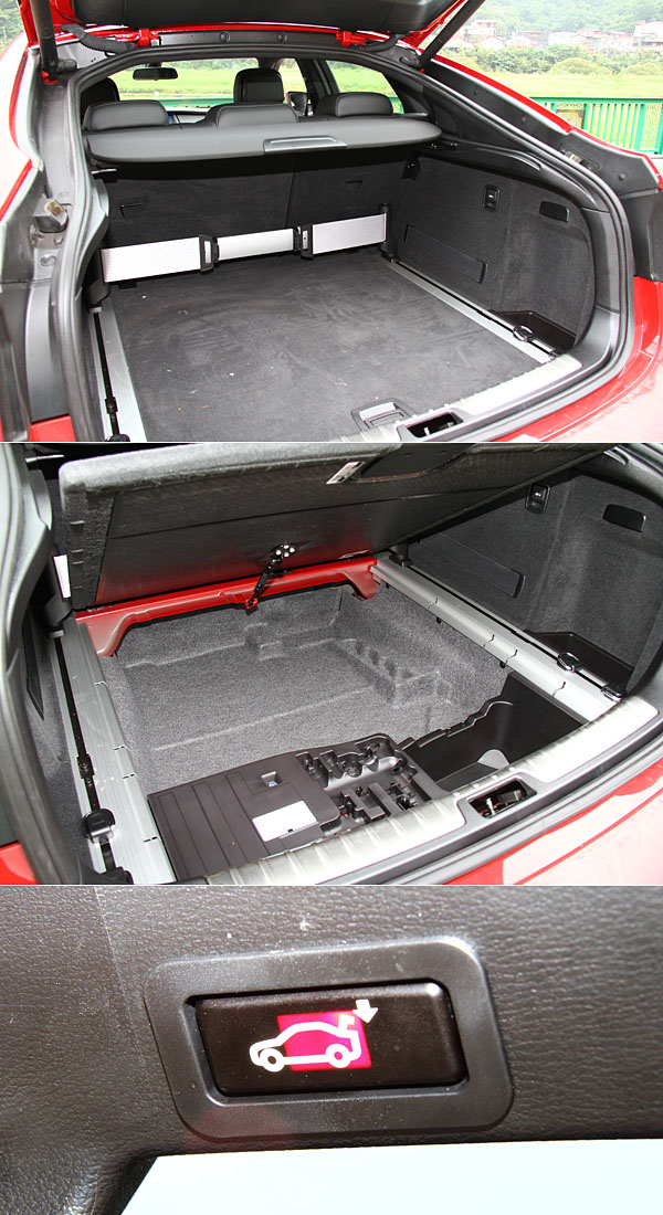 後廂隔板採取油壓挺桿支撐,搭配上電動啟閉尾門,使用上方便許多。