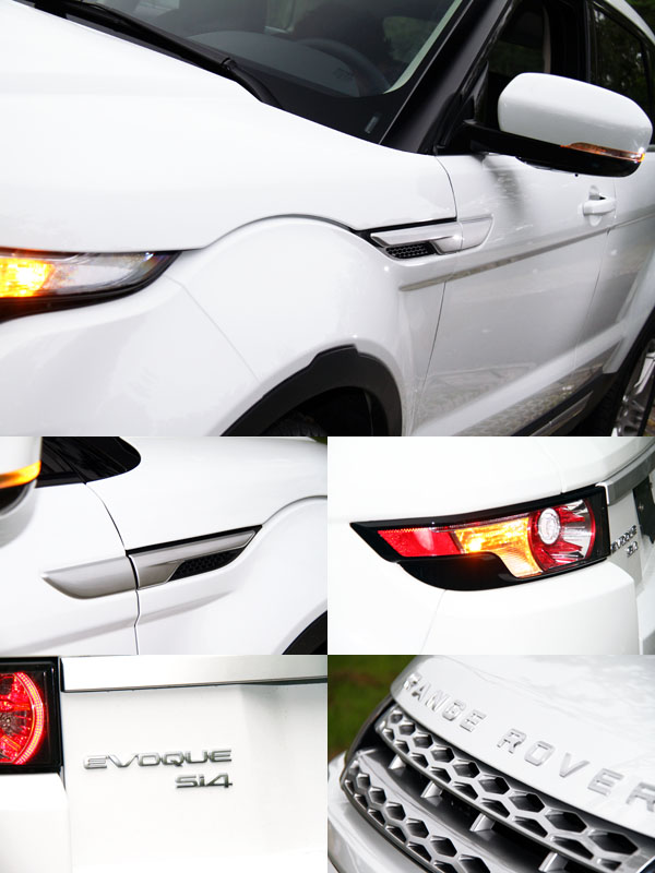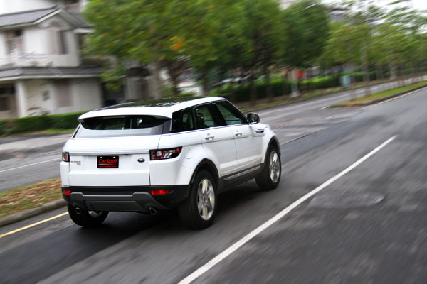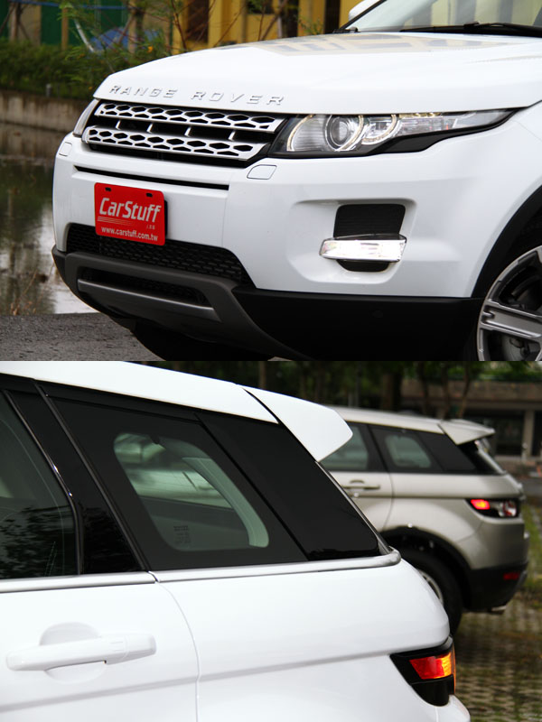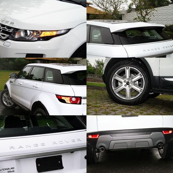 早在2011年6月時,九和汽車便以搶先向原廠爭取了一輛展示車來台進行巡展,讓台灣車迷可以搶先一賭這款運動休旅車的全新風貌,然而在此之前,Evoque跳脫當今設計界限的外型,早已引發車迷間熱烈討論,刻意壓低的車頂線條,讓它更具跑格,當我們看見實車時,發現Evoque與許多歐洲車在上市前總是給人實車比照片好看的錯覺有所不同,Evoque則徹底就像是從照片中開出現實生活中般,看見實車時的視覺衝擊度更高,如果要我用以往的描述新車外型的方式形容Evoque,辭窮的我實在不知道該用什麼辭來形容它,有人說它時尚、有人說它有科技感,任何的形容都沒有錯,對我而言,只知道在一天的試車行程相處中,無論把它開到哪,不同的環境、不同的場景,它都可以成為最搶眼的部分,白話一點說:「就是把它擺在哪都好看」,而且奇妙的是,本次試駕的Evoque 5D Prestige實際車長僅4365mm,比起目前大多數SUV都還要短,但是在視覺上卻讓人有種〝它不小〞的感覺,現實尺碼不大,但是因為外放厚實與搶眼的外表,讓人很容易忽略週遭事物,注視於它,填滿了當你看見它時的視線,所以有了它看起來不小的十足存在感。
