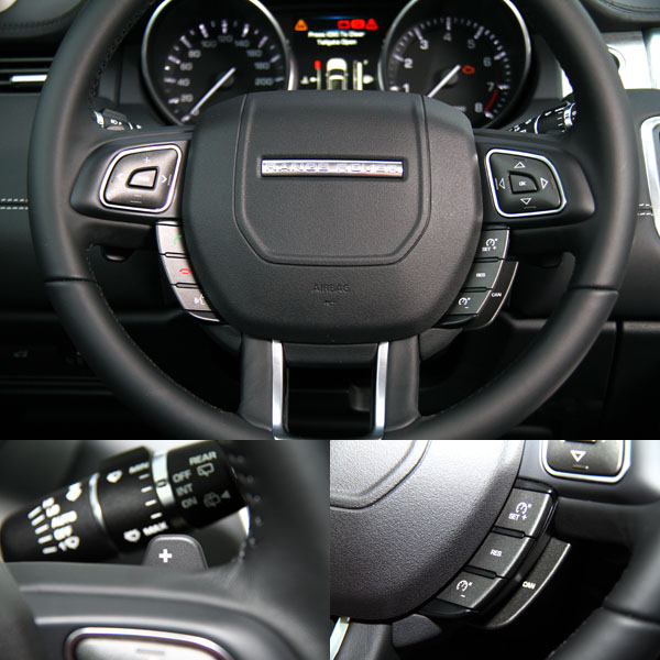 Evoque配置之多功能方向盤,可進行換檔、定速、行車電腦、音響系統等功能。