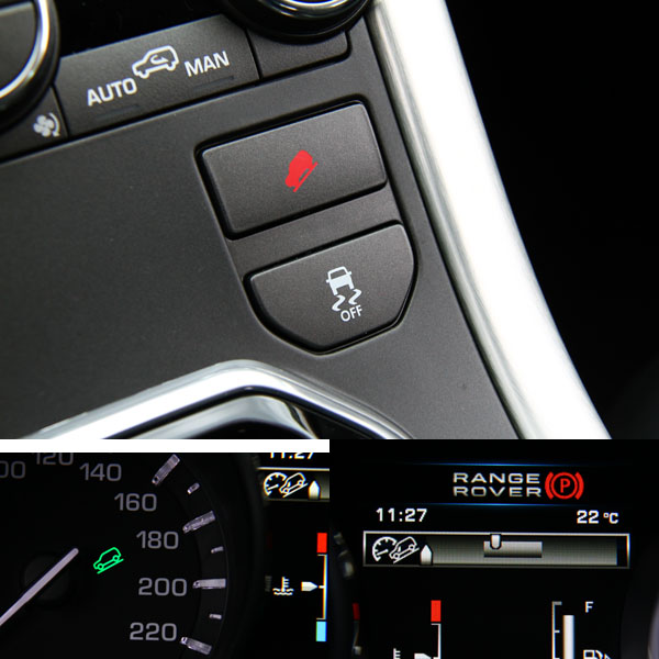 Evoque 亦配置HDC斜坡緩降系統,開啟後儀錶板中即會有綠色車輛向下燈號,以及車速調整顯示。