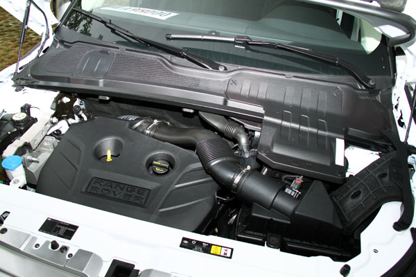 九和汽車首波引進台灣的Evoque全數搭載2.0L渦輪增壓引擎,可輸出240hp/5500rpm最大馬力與34.7kgm/1750rpm最大扭力,並搭配六速手自排變速系統,根據原廠數據其0-100km/h加速為7.6秒,以一輛SUV而言已相當具水準,在剛起步時,礙於車重,瞬間加速感並不明顯,但隨著轉速提升,中段加速力道頗為飽滿且順暢,看著速度錶指針不斷攀升,才會發現原來它的加速其實沒有感受到的慢,而且安定性不錯,快得讓人不會感到害怕,至於整體地駕馭感,仍保有Land Rover一貫的厚實感,像是駕著一座行駛於鐵軌上的台車般,也有點像搭乘火車的路感,可掌握的路感也被隔絕了些許,整體駕駛感像是加高底盤的旅行車,駕駛樂趣並沒有外表來的讓人驚艷。