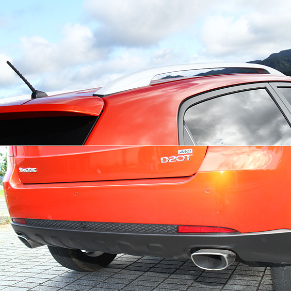 車頂行李架提升便利性,而下方的雙出排氣尾管再度為運動個性添增亮點。
