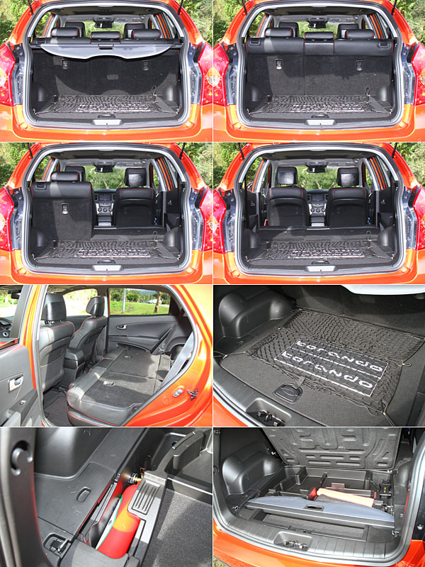 4.4米左右的車身長度,雖然較市面上高能見度的國產休旅車型小上些許,但大師級的設計絕對有其功力,進入車室後座,果嶺式的平版置腳空間,加上拉高的車頂線條與刻意上凹的後座乘客頭部頂篷,皆是讓乘坐空間明顯放大的巧思;以筆者170cm身高乘坐其中,無論頭部或腿部空間,皆沒有任何的侷促感,2650mm軸距長度有此表現,也展現出新世代Korando於空間極大化的用心,縱使四員滿載,相信Korando也不會讓人於空間表現失望。