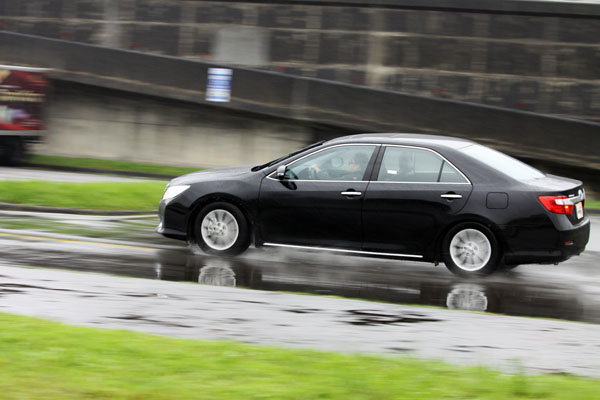 操控方面,除了行路精緻度有所增進外,其餘部分仍是以舒適性為基準,對駕駛者而言幾乎感受不到路感,轉向機構雖然具備速度調節力道功能,在速度增加時會增加轉向手感,已經不會向前代車款輕手到讓人感受不到方向盤與車輛的連結,但路感還是被隔絕在外,轉向精準度略有提升,卻還是不足,而且在動力提升後,加速感提升了,底盤的輕浮感也跟著放大,會給人放棄繼續加速的念頭,然而事實上在經過一天的試駕後,發現Camry的穩定性並沒有想像的糟糕,只是在人與車的溝通介面還是無法給予駕駛足夠的信心,只要一加速或過彎,瞬間的慣性都會出現輕飄飄的感覺,這樣的設定也許可說是為了舒適性而犧牲操控,不過對我而言無論是駕駛或乘坐時,車輛如果無法給予足夠的安定感,都稱不上是舒適,平時我們常在開玩笑,要看一輛車舒不舒服,睡睡看就知道,就算是硬調跑車,可以讓我安心入眠就可以說它兼顧了舒適性,但在Camry上,我無法安心入眠!