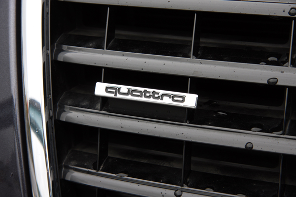 嵌於車頭水箱護罩左側的quattro銘排,闡述了這輛車搭載了Audi最引以為傲的quattro四輪傳動系統。