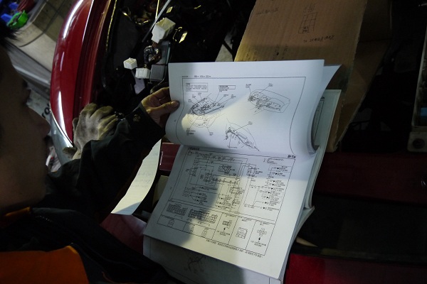 這次的試駕車輛,也是一位客人因為不懂車況,買下了RX-8後發現引擎問題連連,在趙老闆的建議之下,開始了首次美規車身移植日規引擎變速箱的搭配。其實進來台灣由Mazda總代理的都是美規車款,車輛檢驗是看車身號碼的,所以換引擎並不是問題!但是由於美規與歐規電腦系統不同,為了將兩邊接線與訊號正常連結,必須很有耐性的去針對每個接頭接線,讓整體的訊號回饋正常,才不會亮故障燈。