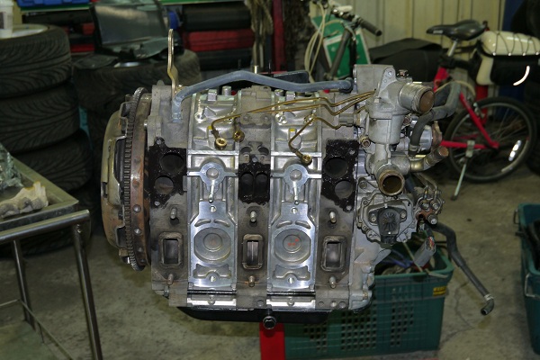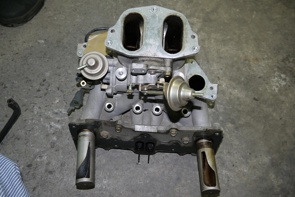 這一顆是本次要移植的日規雙轉子引擎的側面,兩個發亮的部分就是轉子引擎轉子的位置,左右共六個口就是六個進氣阜。