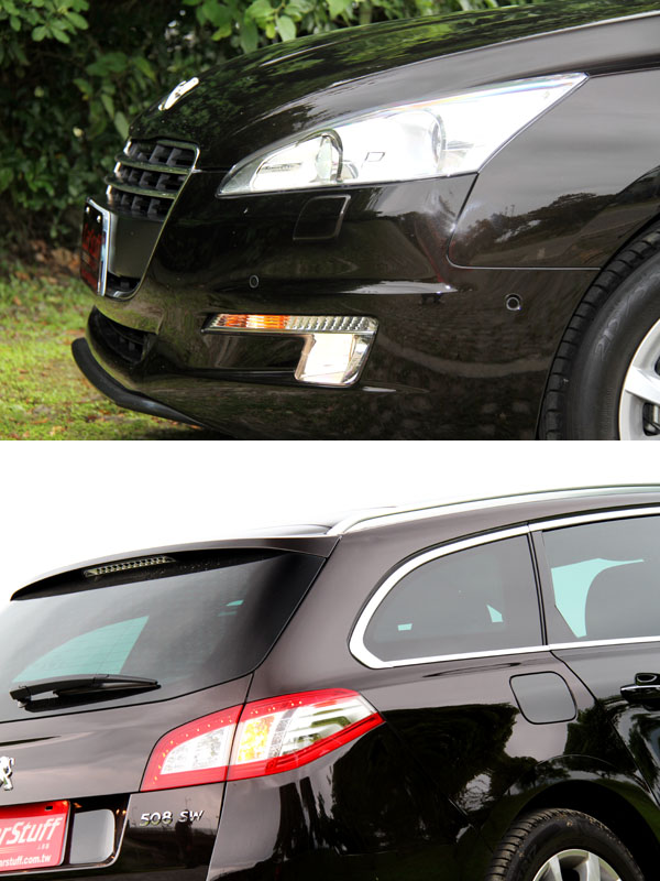 至於本次試駕的508 SW HDi同樣依循著車系地整體風格,尤其是在C柱之後向後延伸的尾廂線條,也不像407 SW的曲度那麼大,而是和緩地向下做收尾,增添了一些俐落感,尾廂所佔整體車輛的比例也拿捏的比較好,視覺協調性較佳。