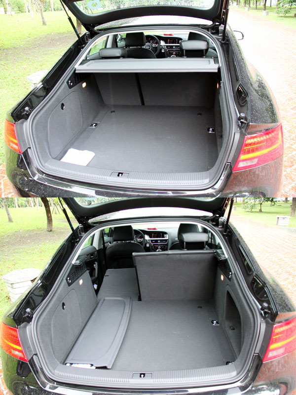 採斜背設計的A5 Sportback,大面積的尾門開啟幅度,使得運載機能遠遠勝過傳統三廂四門房車,行李廂容積也可由480L擴展到最大的1283L。