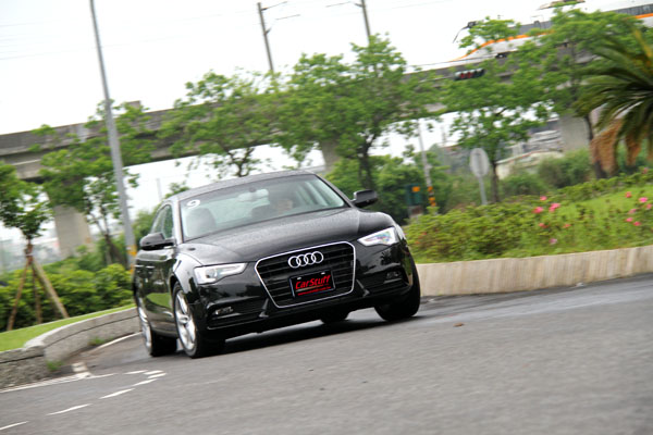 在北宜公路上,採前輪驅動配置的A5 Sportback 1.8 TFSI,跑起來比採quattro四輪傳動系統的車型來得輕快一些,說真的,當今各車廠所推出的新車,在動態與操控表現上都有一定的水準,A5 Sportback 1.8 TFSI也是如此,只要不盲目亂操,都可以很輕鬆的在山道上跑得很快,近年來Audi不斷地強化旗下車款在運動性上的表現,使得底盤傳遞回來的路感變得相當明顯,其實面對台灣糟糕的路面品質,Audi適應的不是太好,尤其是在彎道中遇到坑洞,突如其來的反饋,反而顯得有點過度,只要延路坑洞一多,一路彈跳便會影響了舒適性。。另外,CVT變速系統雖然有動力傳遞平順的優點,但反之也會影響其於山道中,出彎後的再加速,換檔頻率一高,變速箱反應就會有些跟不上腳步,若是能配上S-tonic變速系統,應該可以為它的動能表現加分。
