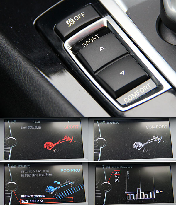 具備三階段的動態行車模式,有著十分差異化的動力輸出特性,在ECO PRO時此引擎溫馴的稍嫌無趣,但SPORT模式時卻又瞬間活潑,有著尚稱足夠的推進動力。