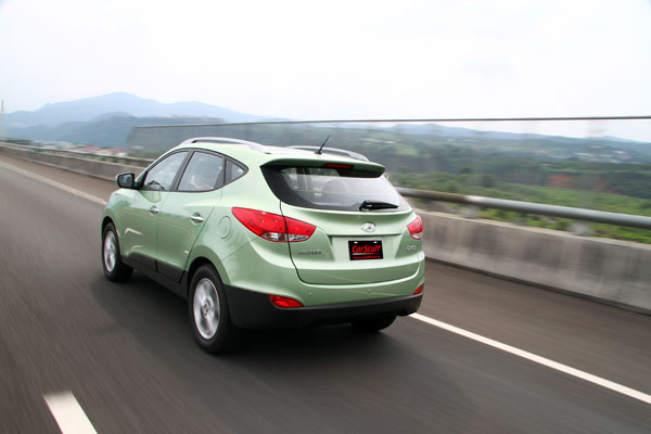 關於未配置柴油動力的問題,原廠表示為了與老大哥Senta Fe做出更明顯的區隔,以及成本考量下,因此選擇以新世代的2.0L汽油引擎做為首波主打;而回歸現實面,對於動力上的挑剔,是有點雞蛋裡挑骨頭,對於ix35在底盤反應上我們認為與i30系列相同,皆非常適合台灣的路況,懸吊設定軟硬適中,也具有一定地路感回饋與不錯地轉向性,至於在後座乘坐感上,與i30相比則是多了一些些來自後軸的細微彈跳感,但大致上不影響整體的舒適性,因此ix35在操控面與乘坐舒適性上我們同樣給予相當高的分數。