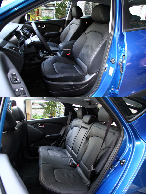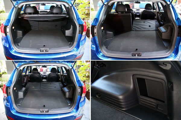 車身長度僅4410mm的ix35,相較於同級對手皆略短了些許,但是2620mm地軸距長度,則位於居中的位置,在整體地空間表現上,人員乘坐的部分仍非常充裕,僅於行李廂高度與縱深會略遜於同級車,不過基本地乘載機能皆不成問題,後座椅背也附有4/6分離翻倒功能,有助於行李廂容積擴充。
