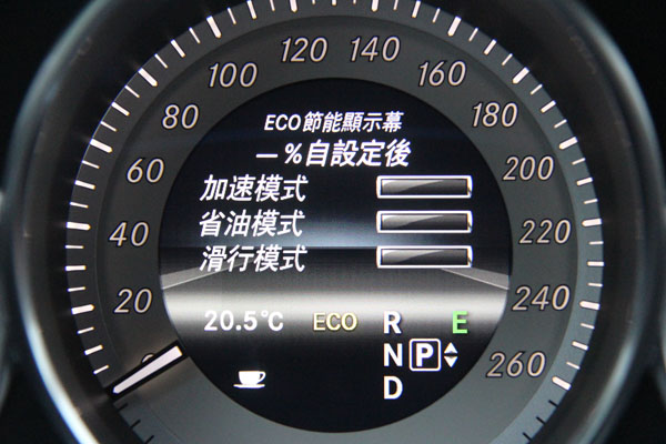 歸零後儀表中的ECO節能顯示幕會提供加速、省油與滑行所佔的比例,可做為行駛習慣的參考資訊。