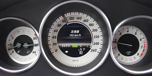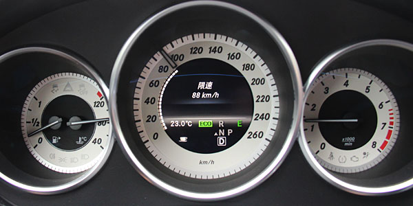 而CLS 350 BlueEFFICIENCY Shooting Brake所提供的定速巡航裝置也是讓此長途旅程更輕鬆的配備。除了透過方向盤左下方撥桿可在啟動定速裝置後,以上下輕撥的方式,以1km/h的時速加快或減速車速外,還可加大撥桿幅度,會以10km/h的幅度加速或減速,如果此時車速在90km/h,往上用力一撥,車速會快速的提升至100km/h,而如果你車速在103km/h,往上用力一撥,則會提升至110km/h;對於長途駕駛而言,減少了許多駕駛者的腿力負擔外,也無須時時刻刻的注意車速避免超速,也讓精神方面的負擔減少許多。