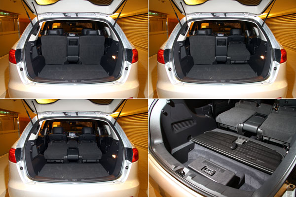第二排座椅翻折後無法與後廂連成一平整的置物平台,唯一可惜之處;右下圖為後廂隔板下的置物空間呈現。