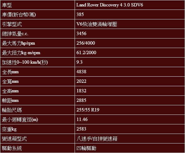 而這次Discovery 4 3.0 SDV6 Black Design限量式樣車的引進,在配備上還較一般HSE增添可變視角環車攝影系統,整套裝置可以多支攝影機統整畫面於中控台螢幕上,監控停車或窄巷會車時的死角,不過,就因著這些漂亮的外觀/內裝套件與停車輔助系統,Discovery 4 3.0 SDV6 Black Design的售價足足比一般版本高出20萬元而為385萬元(一般HSE版本為365萬元),雖然確實因此而讓車看起來更加摩登,有心入主的消費者也理當不會對這區區價差感到猶豫,但其實Discovery 4 3.0 SDV6的好,根本無需多餘雕琢,便能讓所有懂車人士為之傾倒。