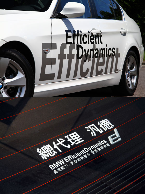 為達宣傳效果,此輛試駕的320d EfficientDynamics Edition於外觀上貼上許多EfficientDynamics高效動能科技字樣貼紙。
