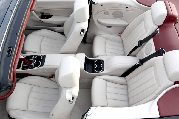 舒適,是GranCabrio 設計所著眼的重點。傳統跑車後座乘客必須忍受的狹小空間和不便成為過去式:GranCabrio 的後座乘客不再是旅程的配角,轉而成為旅程中共同擔綱的主角。即使是身高180公分的乘客腿部也能舒適地擺放,背部再也不必被迫不自然地「正襟危坐」,而是可以舒適並自然地靠在兼顧舒適性的跑車化座椅上。