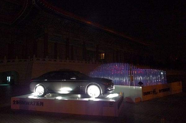 BMW總代理汎德公司為展現全新BMW大7系列雍容大器的美學造車理念,自即日起於台北國家戲劇院生活廣場前,設立一座前所未見的獨特巨型全新BMW大7系列光雕藝術裝置與全新BMW ActiveHybrid 7豪華油電旗艦實車展示,完美詮釋全新大7系列傑出的造工藝術;同時,汎德公司特別設立BMW尊榮預約賞車專線:0800-311-588,凡來電預約並親臨全台BMW展示中心賞車的貴賓更可享有BMW限量專屬精美贈品。