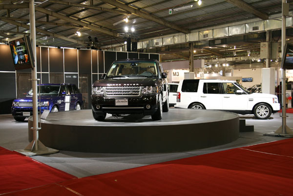 Range Rover展區展出車款包括10年式Range Rover Sport 5.0SC以及全新11年式Range Rover 5.0SC兩款車型;同品牌的全新前衛運動休旅Evoque,也透過螢幕播送方式為現場車迷朋友帶來最新的車輛技術簡介。