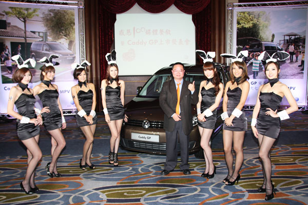 太古標鎰汽車總經理蔡泗銘偕同七位兔女郎一起揭幕全新改款之VW Caddy GP。