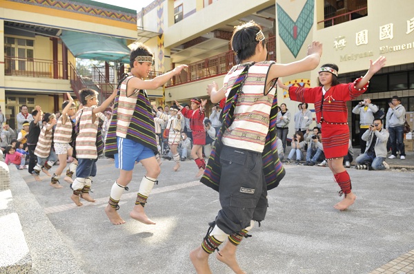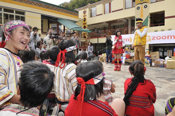 由梅園國小學童們送上泰雅族傳統歌舞表演,感謝Zoom-Zoom Hug的關懷。