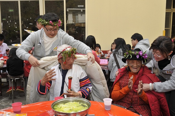 另外還有戶外新年圍爐活動,校方特別請到泰雅族兩位紋面國寶人瑞,陪著大家一起圍爐,Mazda團隊也貼心送上羽絨大衣,讓兩位長老能溫暖渡過山上的寒冷冬天。經過上午的相處,小朋友們都已經拋開羞怯,與車友們開心互動,圍爐時的歡樂氣氛,以及當天老天爺眷顧,給了Zoom-Zoom Hug在寒冬中一個晴朗溫暖的天氣,加上梅園國小附近的美麗景色,相信這是所有參與「Zoom-Zoom Hug」活動的人最特別的新年圍爐。
