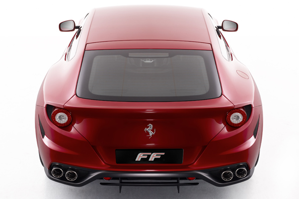 「FF」之名為Ferrari Four的縮寫,同時代表著四座與四輪傳動之意,而且「FF」未採以往Ferrari四座GT跑車一貫地的外型設計語彙,改採類似BMW Z3 M Coupe的短尾斜背設計,與所謂地「Shooting Break」造型相仿,但「FF」在車頂尾段保留跑車應有的弧線,同時在追求完美配重下,Ferrari旗下前置引擎車款的長車頭設計則予以保留,並融合了458 Italia與599 GTB Fiorano的各項元素,頭燈部分延續458 Italia的刀刃造型,前葉子鈑上的散熱孔則與599 GTB Fiorano相仿,整體外觀造型雖然未如458 Italia那般激情前衛,但還是保留了Ferrari流暢充滿躍進力的風格。此外,在首波公布的三張廠照中可以發現,在車尾下方還設有獨特地外懸式分流翼,也透露出它將再度展現Ferrari在空氣動力設計上的創新成就。