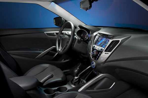 Veloster車名源自 ”Velocity速度”與”Roadster跑車”的結合,Hyundai設計的靈感來自重型機車的高速感 — 黑色A柱營造重機安全帽的帥勁,內裝中控台類比摩托車的油箱盒,而冷氣出風口就像兩支高速排氣管。