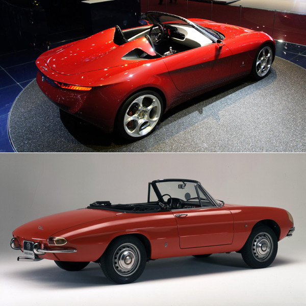 Pininfarina於2010年日內瓦車展上發表的「2uettottanta」概念車(上),其設計即承襲了1966年發表的Alfa Romeo Spider Duetto(下),特殊的「boat-tail」車尾造形,也預計將出現在嶄新的Spider車系上。