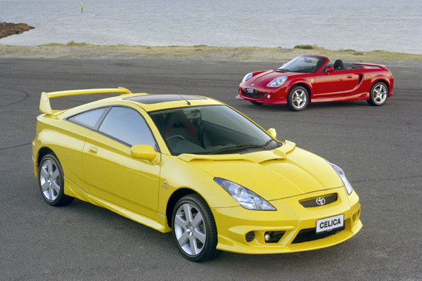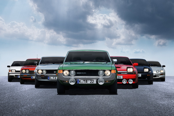 Toyota Celica車系誕生於1970年,圖示為量產至1999年截止的前六代各式車型。前三代Celica車系(左四至左二)均為前置後驅設定,自第四代(左一)開始才改為前置前驅設定,並提供性能化渦輪四驅車型的選擇。