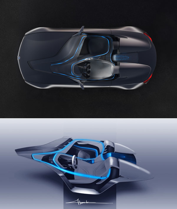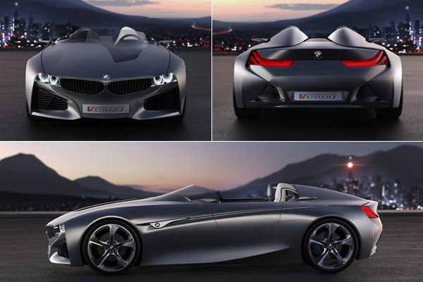 獨立雙座、低矮的前擋風玻璃、Open-Top上空配置與座椅後方雙隆起之背脊線條,展現出復古跑車之設計情懷,但在大面積之雙腎形水箱罩、侵略性之頭燈造型、LED光條的大量運用與那饒富曲面折理的鈑件造型中,又可嗅出濃厚的BMW設計韻味;不過除了外觀造型極具科技氛圍與視覺魅力外,那充分導入燈光、聲響打造出的特殊座艙,更是Vision ConnectedDrive概念車的設計精髓。