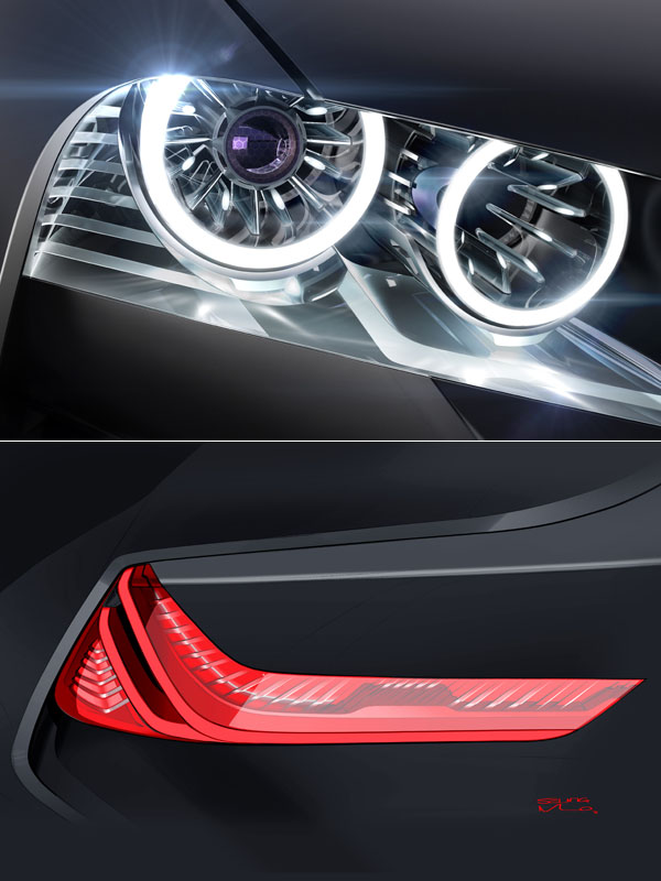 極具侵略性之頭燈造型、運用LED光條知尾燈設計,都是在Vision ConnectedDrive概念車上可以見到BMW家族風格之設計特點。