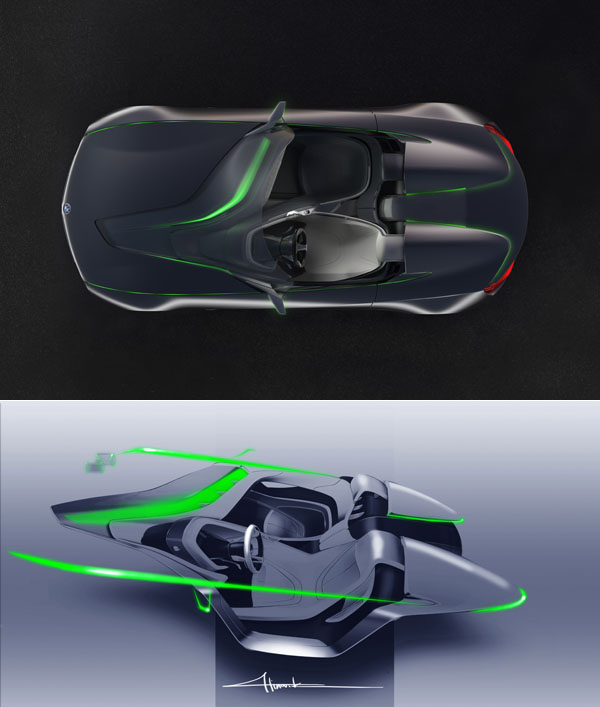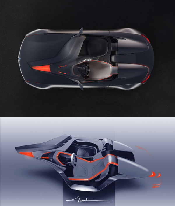 身為此次車展中BMW展館最具話題之Vision ConnectedDrive概念車,設計概念可謂縱古朔今,古的是,承襲過往Z1敞篷小跑之雙座配置,造形設計主軸,又延續先前Vision EfficientDynamics概念車之範疇。