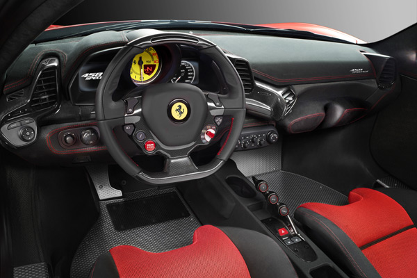 內裝設計方面,458 Speciale維持紅黑相間的色彩基調,並以多處的紅色縫線點綴,來營造熱血的感受。