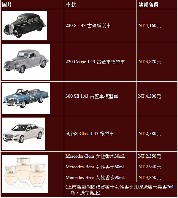 獨家首度販售的S-Class系列1:43經典古董模型車。