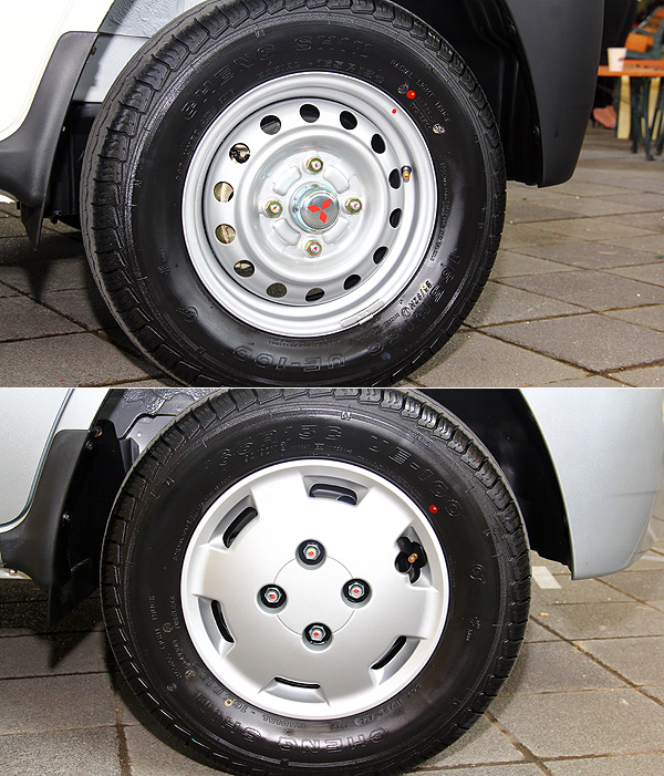 鐵圈的搭配,以節能省油為主要考量。頂規車型則搭配有下圖中的輪圈蓋裝飾。