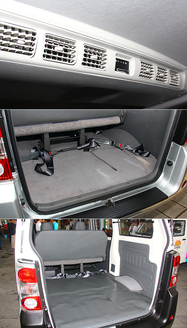 廂型車搭配有後座獨立出風口,5人座車型則以膠皮作為後廂的底板包覆,以耐髒為主要考量。