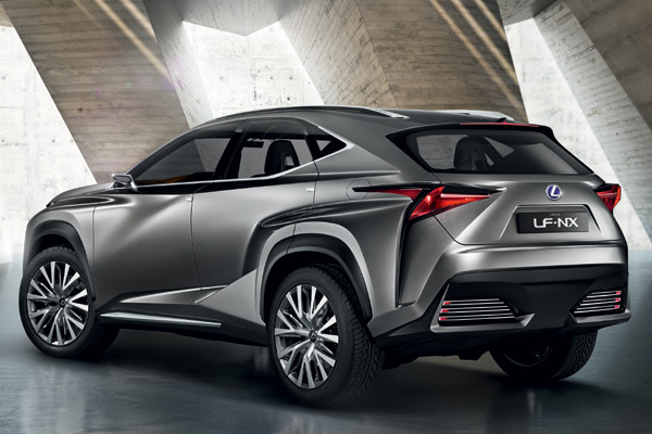 LF-NX概念車尾燈組兩側向下延伸、融入後保桿的設計線條,更與車頭保桿分隔前葉子板的線條相呼應,而LF-NX概念車更採用全新的霧面金屬銀色烤漆,使其充滿張力的車體線條更為突顯。