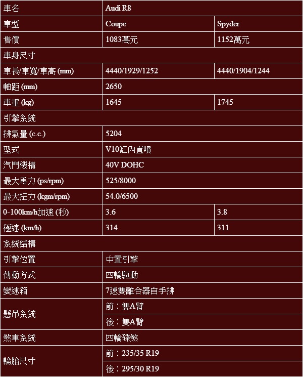 小改款R8於今日正式登陸臺灣,以小幅修改的外觀造型,搭配更新的變速箱組合傳達新意。