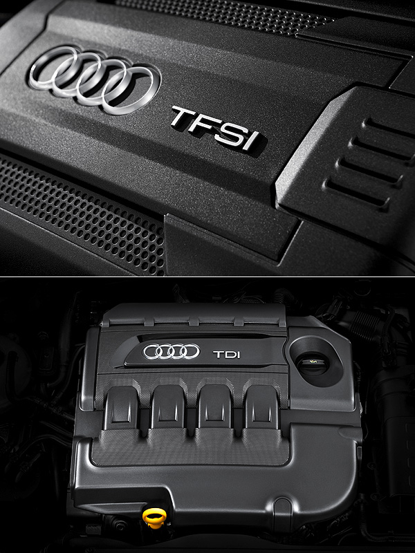 動力陣容部分,Audi提供1.4 TFSI、1.8 TFSI與2.0 TDI等3具直噴渦輪增壓引擎作為A3 Cabriolet的動力選擇,分別能提供140 hp、180 hp與110 hp的最大馬力,1.8 TFSI搭配7速S tronic雙離合器變速箱與Start-Stop怠速熄火系統,1.4 TFSI與2.0 TDI則標配6速手排變速箱,其中1.4 TFSI還配有COD汽缸暫歇系統,能夠在巡航狀態僅以兩缸運作行駛,帶來出色的油耗表現。Audi同時也公布S3 Cabriolet的動力編成,將搭配擁有300 hp、380Nm扭力的2.0 TFSI引擎,搭配6速S tronic雙離合器變速箱,能夠帶來0-100km/h加速5.6秒的性能表現。
