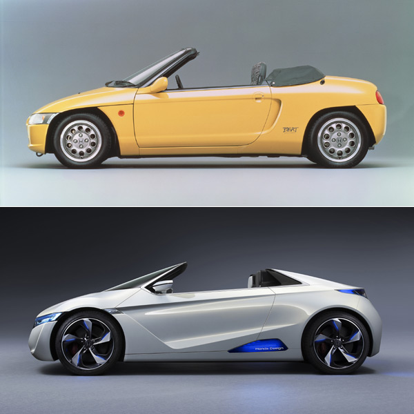 Honda於2011年東京車展發表的「EV-STER」概念電動跑車(下),當時就盛傳將會是Beat(上)的後繼車雛型,但至今仍未付諸實現。