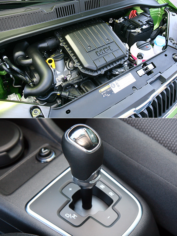 以節能環保為訴求的Citigo搭載排氣量999c.c.的3缸MPI汽油引擎,能夠輸出75 hp的最大馬力、9.7公斤米的最大扭力,搭配5速ASG單離合器自手排變速箱,能夠在13.2秒完成0-100 km/h加速,並擁有171 km/h的極速表現,即使並未有令人熱血沸騰的表現,但對於都會通勤使用而言仍相當足夠。同時,在經濟部能源局的新車耗能測試中,能夠繳出市區16.65km/L、高速22.77km/L以及平均20.1km/L的油耗表現、相當傑出。