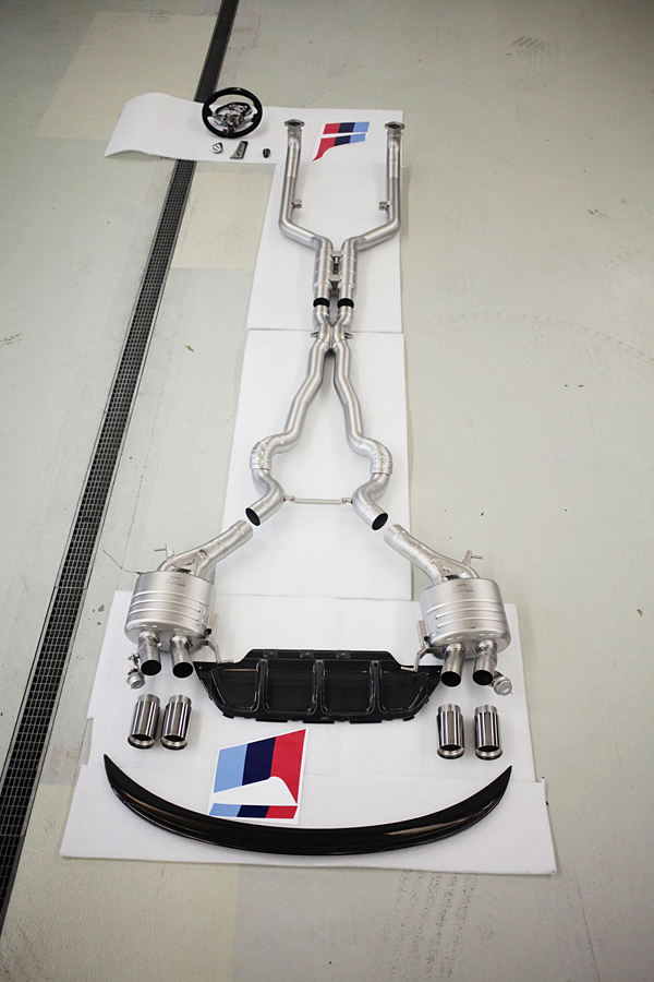 BMW M Performance與DTM的賽事合作夥伴Akrapovic共同設計,為M5與M6車系打造專屬的升級排氣系統,完全為鈦合金材質,相較於原廠配置的排氣系統,足足輕上10kg之多